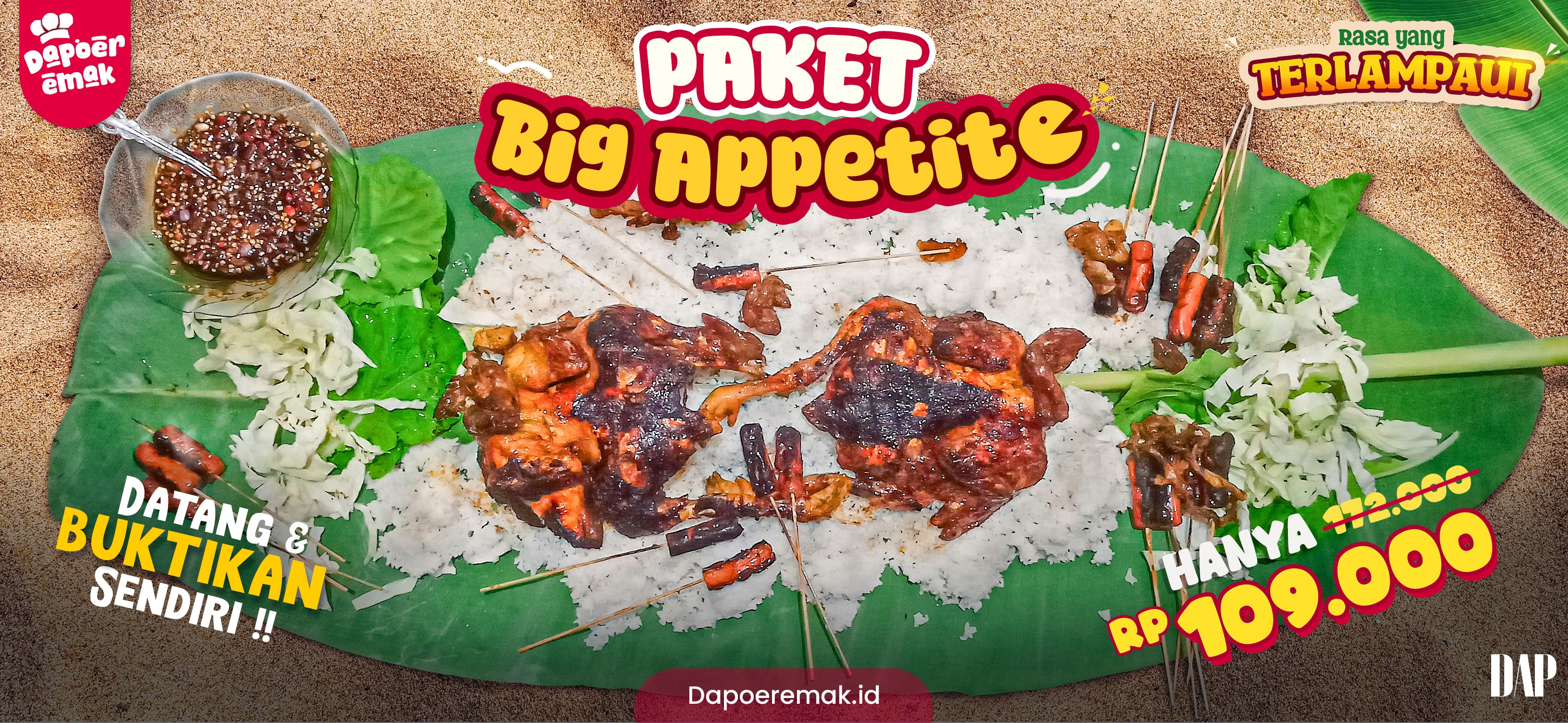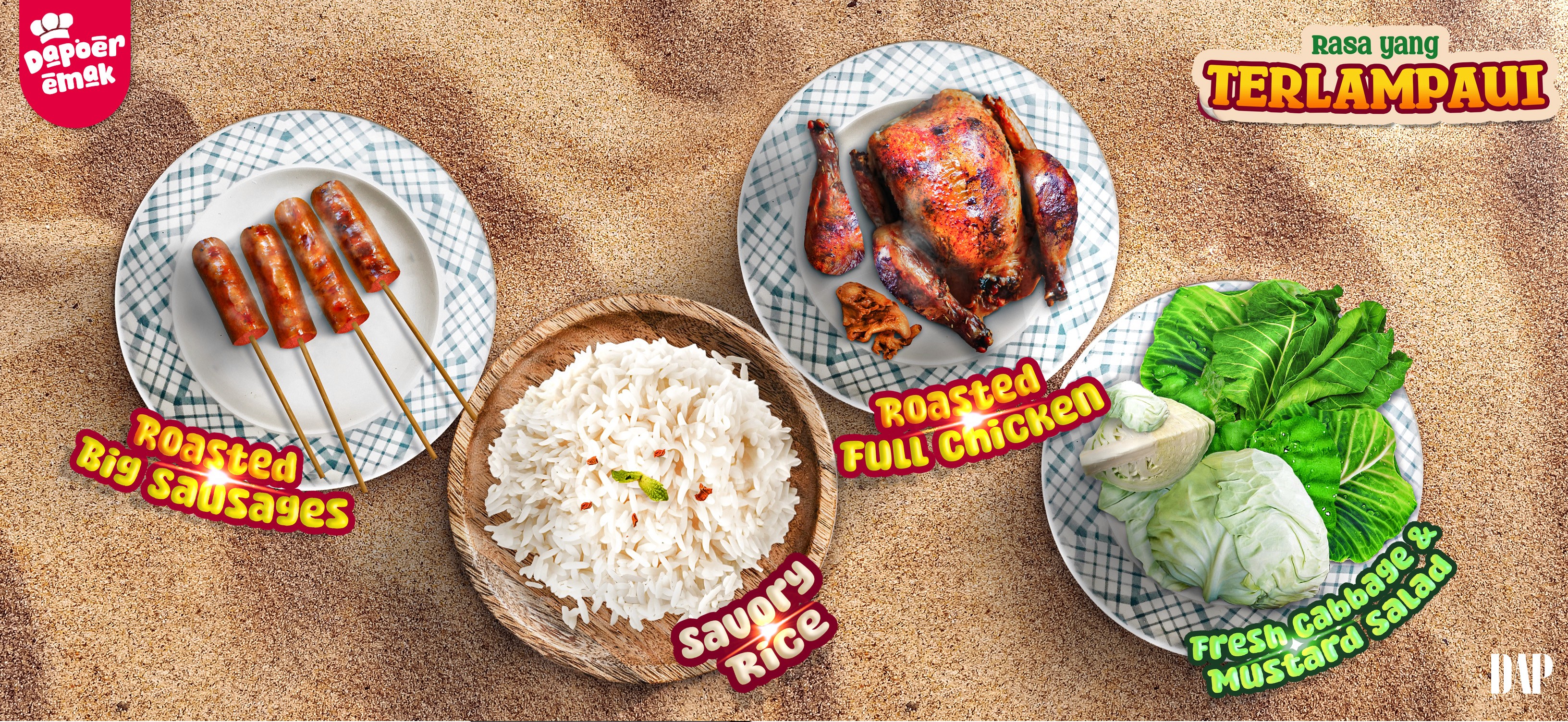 Designing the Food with Local and Traditional looks, making the overal colors more vibrant and brighter to create an appetizing feels or impression, especially with red and yellow color tones. Honestly this design looks good and traditional because it relies on pretty good photography shot, image composition with a bit retouch on the image, also. So, Here it is.